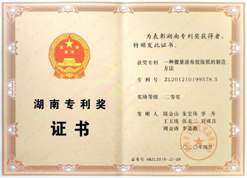 2019年度湖南專利獎(jiǎng)在2020年湖南知識(shí)產(chǎn)權(quán)宣傳周啟動(dòng)儀式上揭曉,瑞福尼科技公司喜獲專利發(fā)明二等獎(jiǎng),獲獎(jiǎng)專利為“一種微量涂布膠版紙的制造方法”。該專利技術(shù)生產(chǎn)的高檔文化紙系列產(chǎn)品以環(huán)保的生物機(jī)械漿為主要原料,并采用了先進(jìn)的高檔微量涂布技術(shù),具有白度高,松厚性好、平滑細(xì)膩、印刷適性好、綠色環(huán)保等優(yōu)勢(shì)。專利技術(shù)在岳陽(yáng)林紙股份公司成功實(shí)施3年以來(lái),共創(chuàng)效超過(guò)6000余萬(wàn)元,環(huán)境效益和社會(huì)效益顯著。