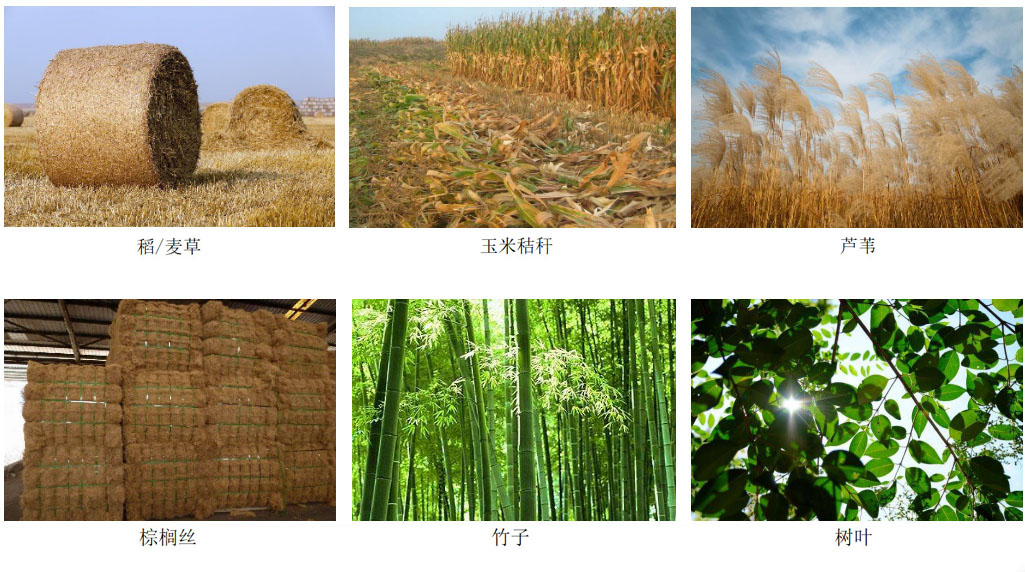(1)稻草、麥草、玉米秸稈、蘆葦、棉桿、竹子、甘蔗渣、棕櫚絲等秸稈原料;