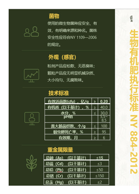 生物有機(jī)肥: 指特定功能微生物與主要以動(dòng)植物殘?bào)w(如畜禽糞便、農(nóng)作物秸稈等)為來(lái)源并經(jīng)無(wú)害化處理、腐熟的有機(jī)物料復(fù)合而成的一類兼具微生物肥料和有機(jī)肥效應(yīng)的肥料。