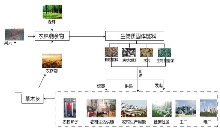 定義:以農(nóng)林剩余物(如秸稈、鋸末、甘蔗渣、稻糠等)為主原料,經(jīng)粉碎、擠壓、烘干等系列工藝,制成各種成型(如塊狀、顆粒狀等)的,可直接燃燒的一種新型清潔燃料。